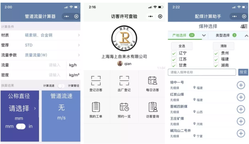 訪客許可平臺、管道流速、混煤計算等微信小程序上線,免費為企業提供服務,為化工從業者提供便利。