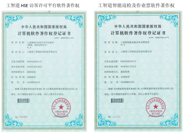 新增《工智道智能巡檢及作業票軟件》、《工智道HSE訪客許可平臺軟件》等著作權,已達21項,提供完全自主知識產權的軟件產品。